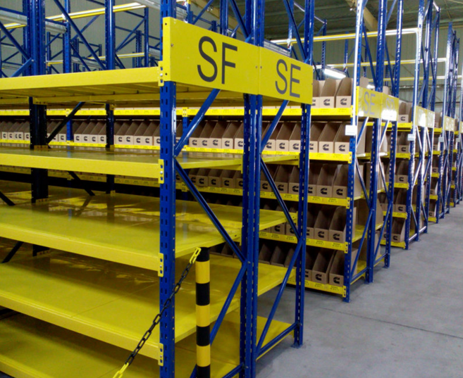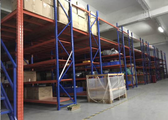 重型托盤式貨架。又稱為重型貨架,重型貨架是輕中型貨架的承重升級版的鋼制貨架類型。較為直接的存放貨物表現在取消了層板,直接是采用的是橫梁存放貨物,這就要求托盤作為重要的承重介質,貨物使用托盤盛放后再直接放置在橫梁上。重型貨架的橫梁層數可以根據叉車的最高上叉高度達到5層。每層的承重可以達到2噸左右,比較適合擺放工業設備和零件等重型貨物。