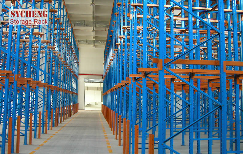 貫通式貨架系統的穩定性是所有種類貨架中較為薄弱的,為此貨架不宜過高,一般在10m以內,另外系統中還需加設拉固裝置。此種系統貨架排布密集,空間利用率極高,適于儲存少品種大批量同類型貨物,貨物可從同一側存入取出,也可從一側存入另一側取出.