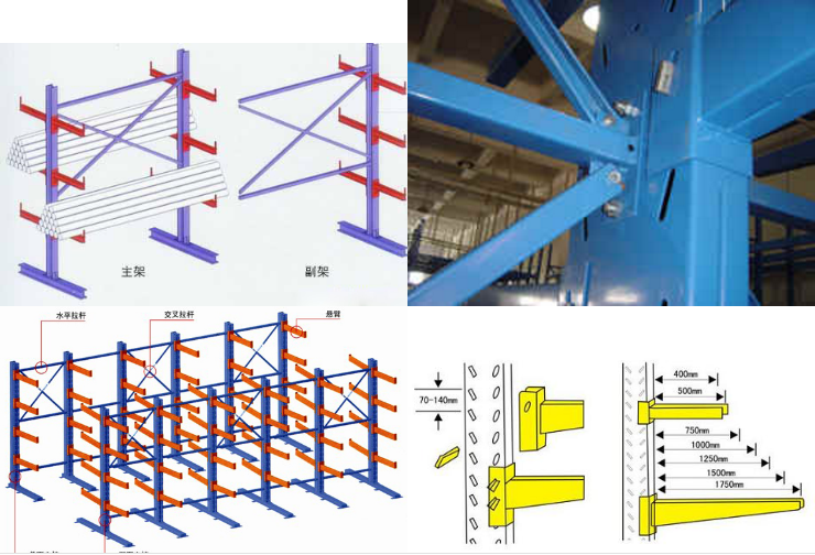 懸臂式貨架立柱多采用C型鋼、H型鋼或冷軋型鋼,懸臂采用方管、冷軋型鋼或H型鋼,
