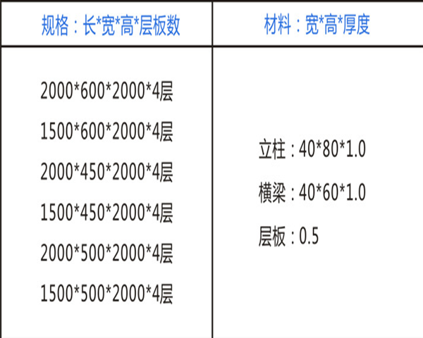 輕型倉儲貨架適合一般人手或堆高機放貨,并儲存量大的企業使用。常用規格和尺寸如圖所示: